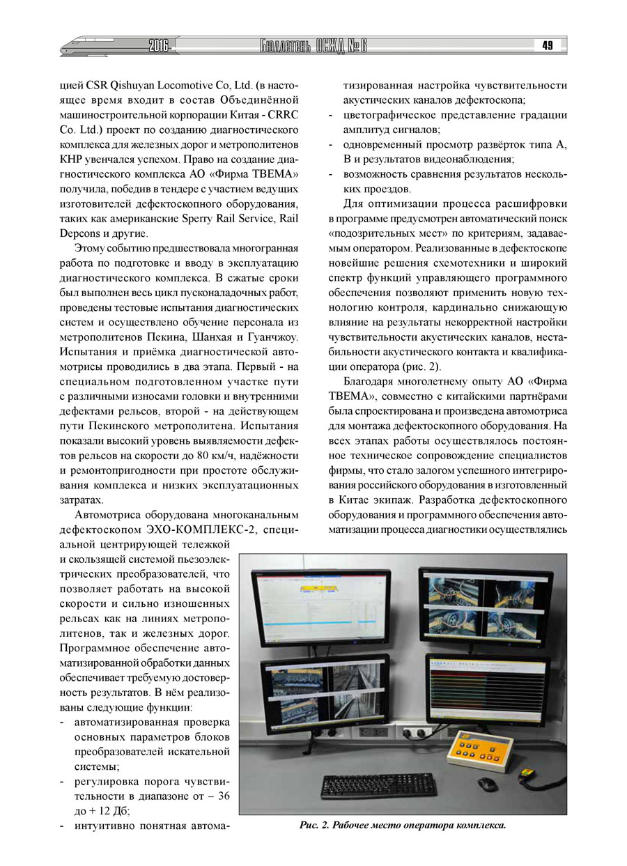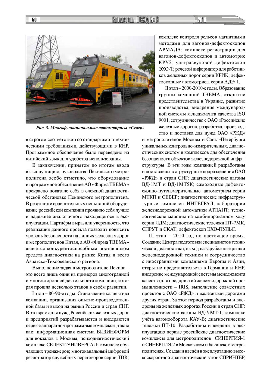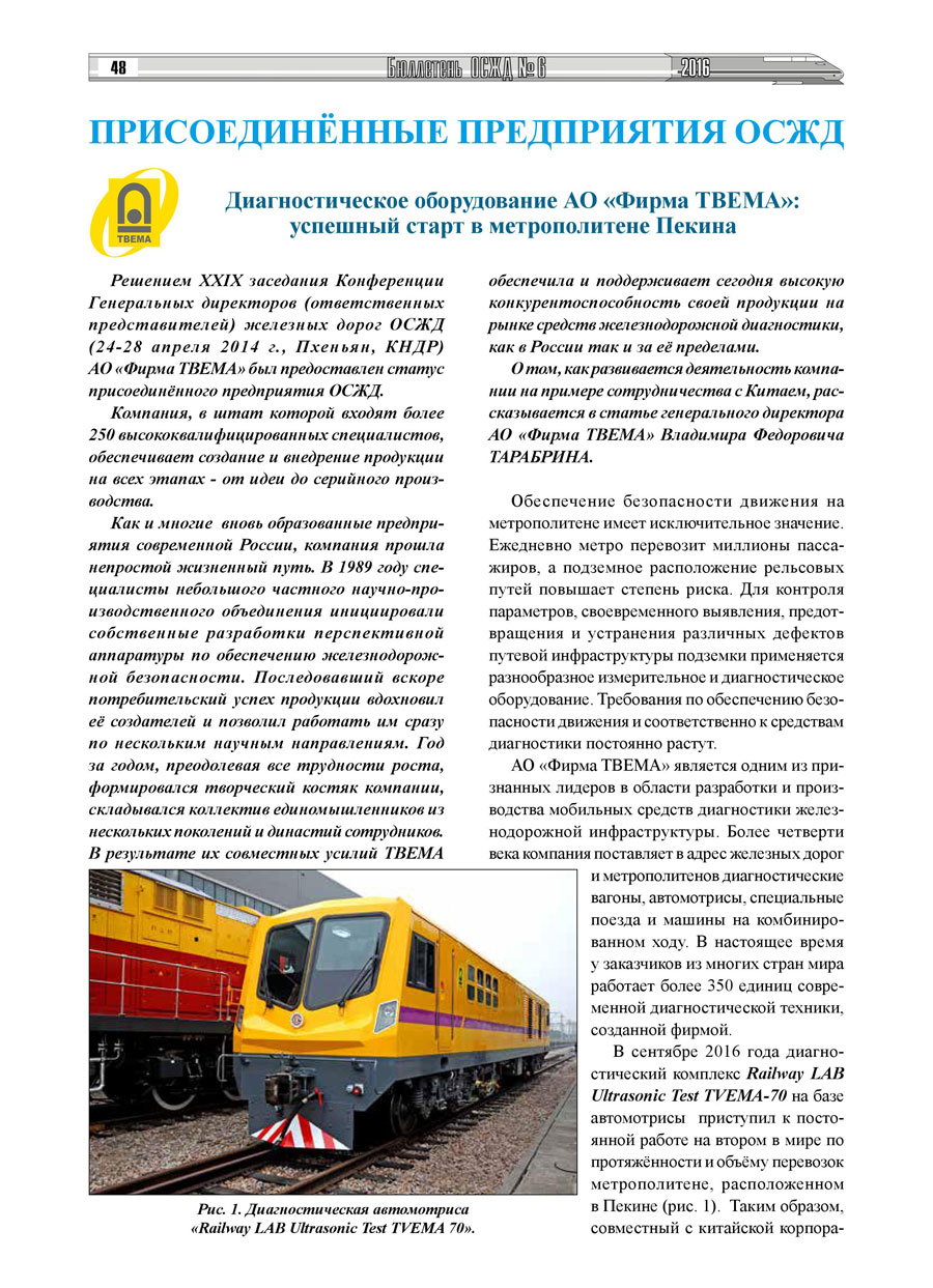 Diagnostics Equipment of the «Firma TVEMA» JSC: a successful start in the undergrou nd of Beijing