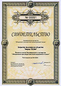 Since 2005 the company's quality management system has certified according to ISO 9001-2000. This certification has allowed us to reach a new level of global requirements and to implement modern business model to attract more investments and reduce the cost of rework.