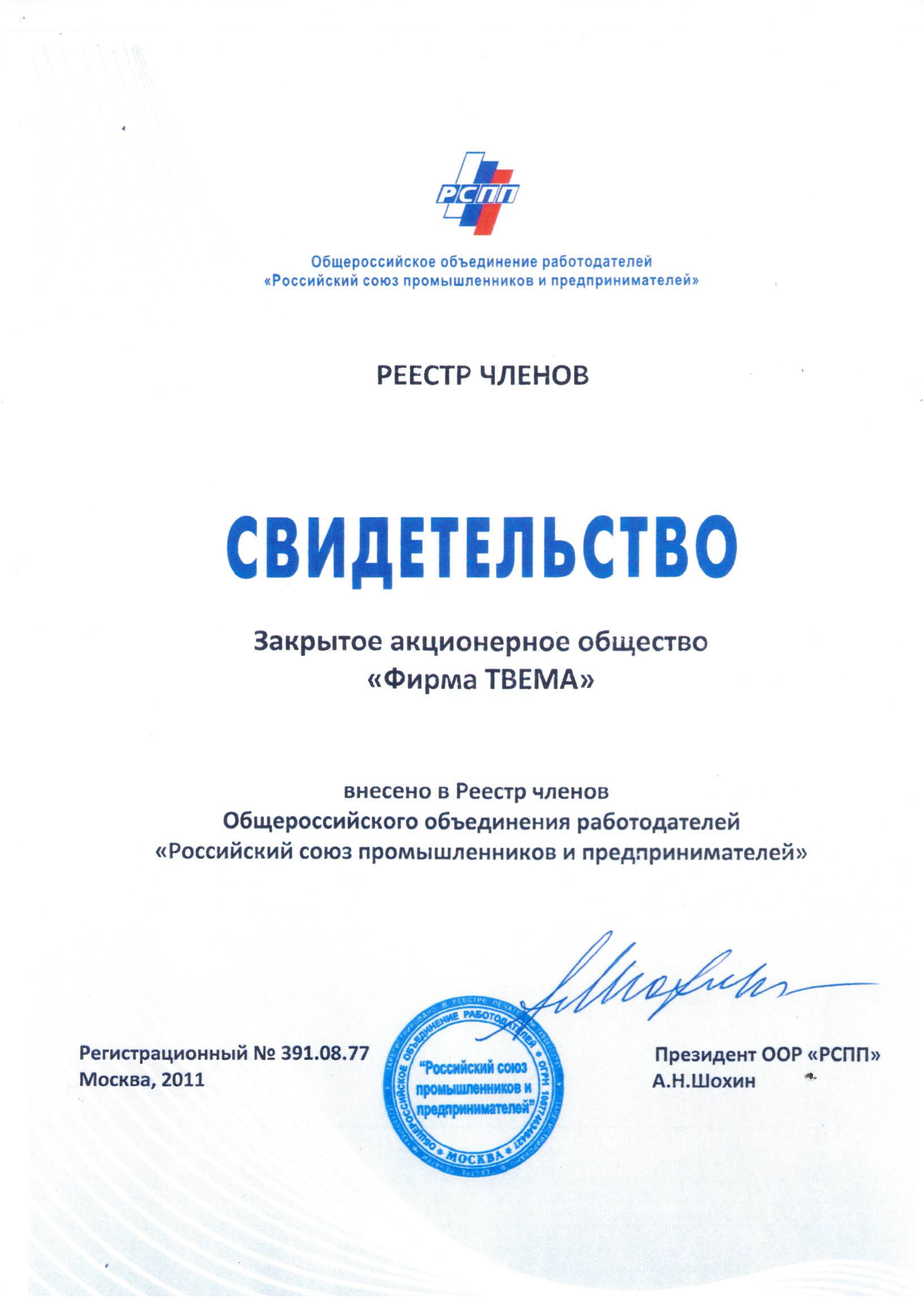 To enter the foreign markets the Company required the support of another association – The Russian Union of Industrialists and Entrepreneurs. TVEMA became the member of this association in 2011.