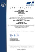 Industry standard IRIS was developed on the basis of General quality standard ISO 9001 and is a recognized international standard that defines basic requirements for manufacturers of railway equipment and component suppliers to the rail industry. By 2015, JSC "RZD" is going to transfer our railway engineering on the requirements of the standard IRIS.