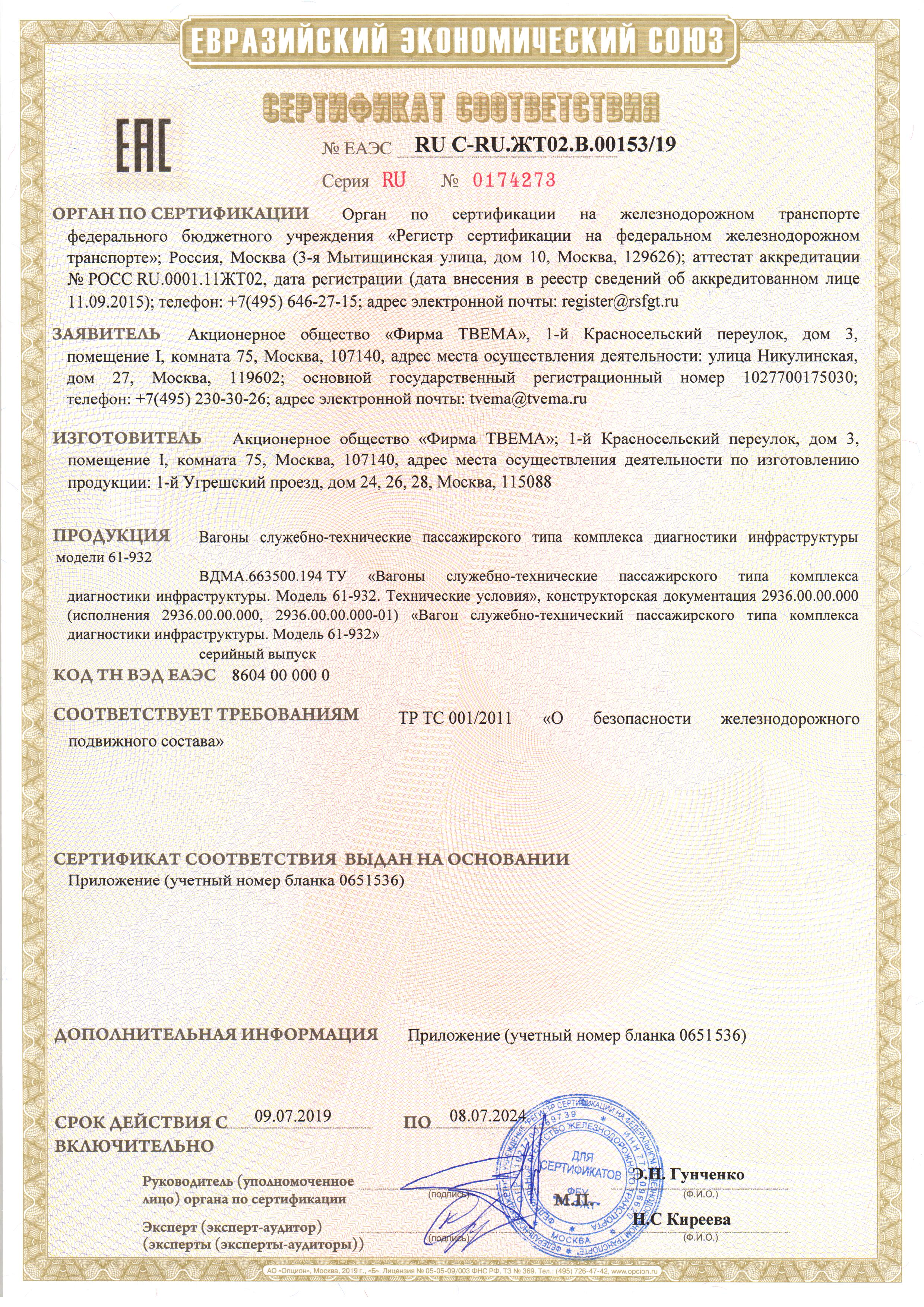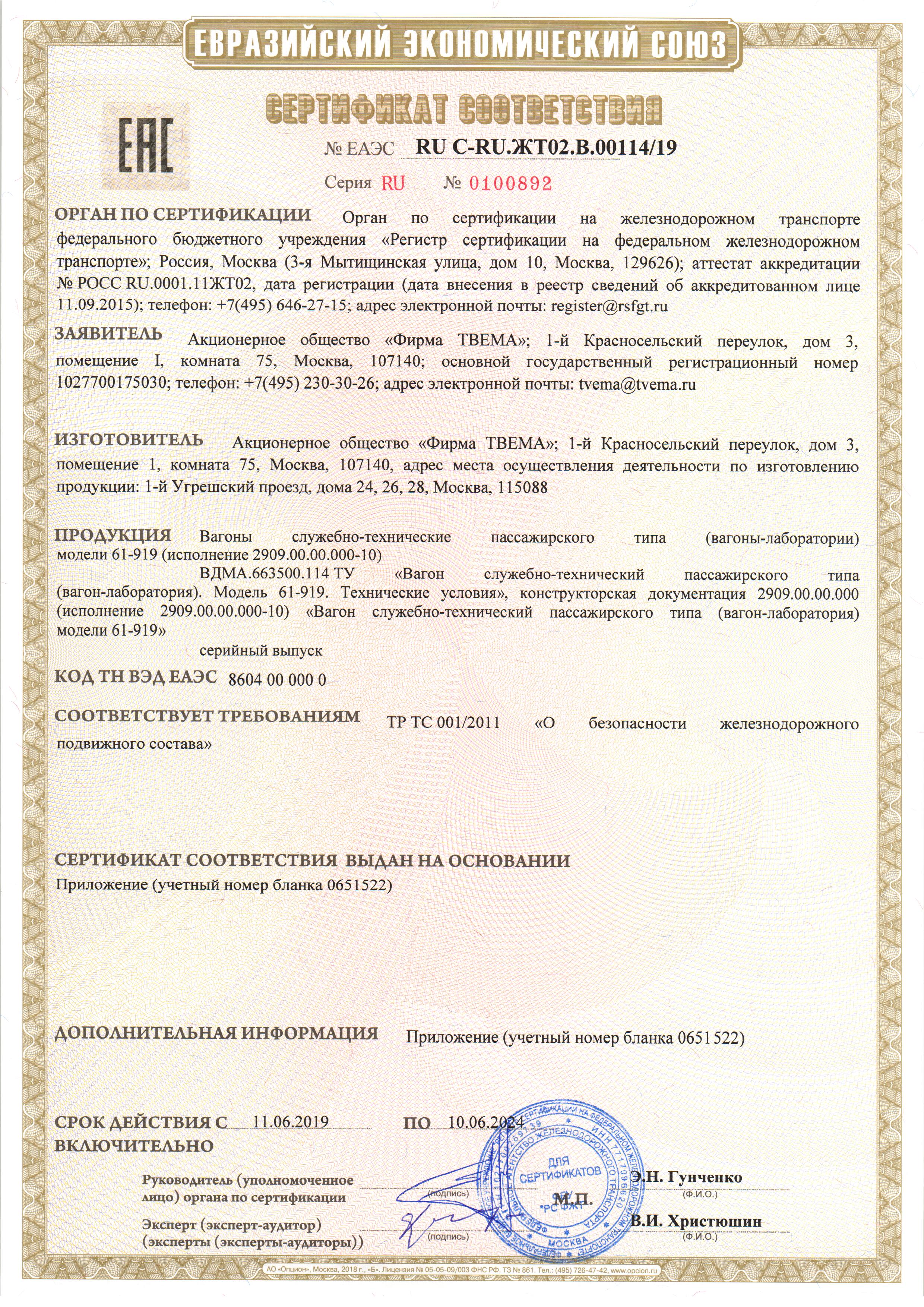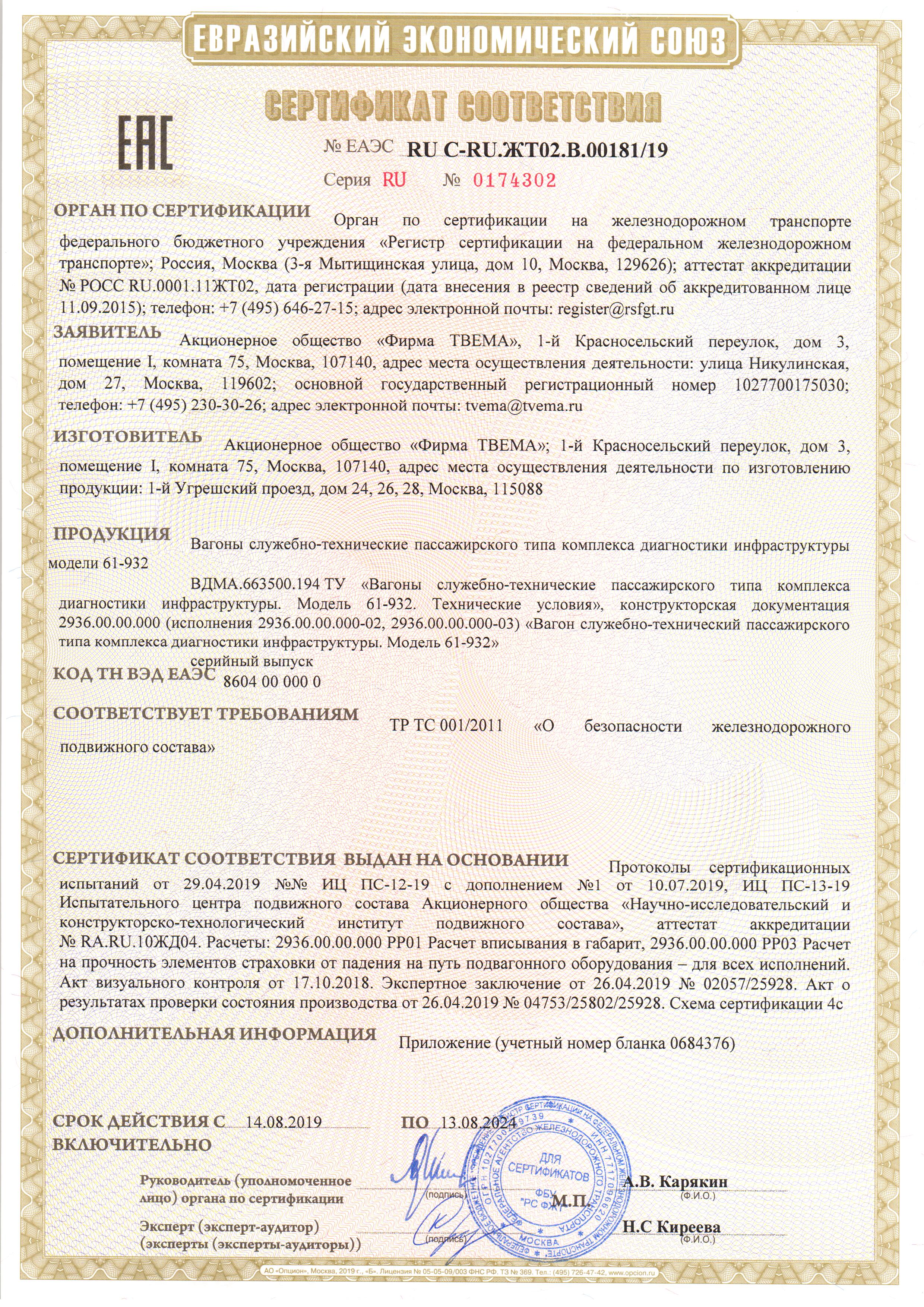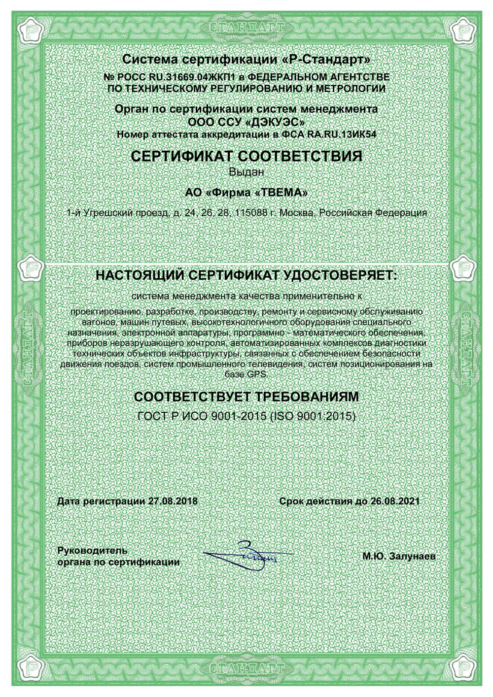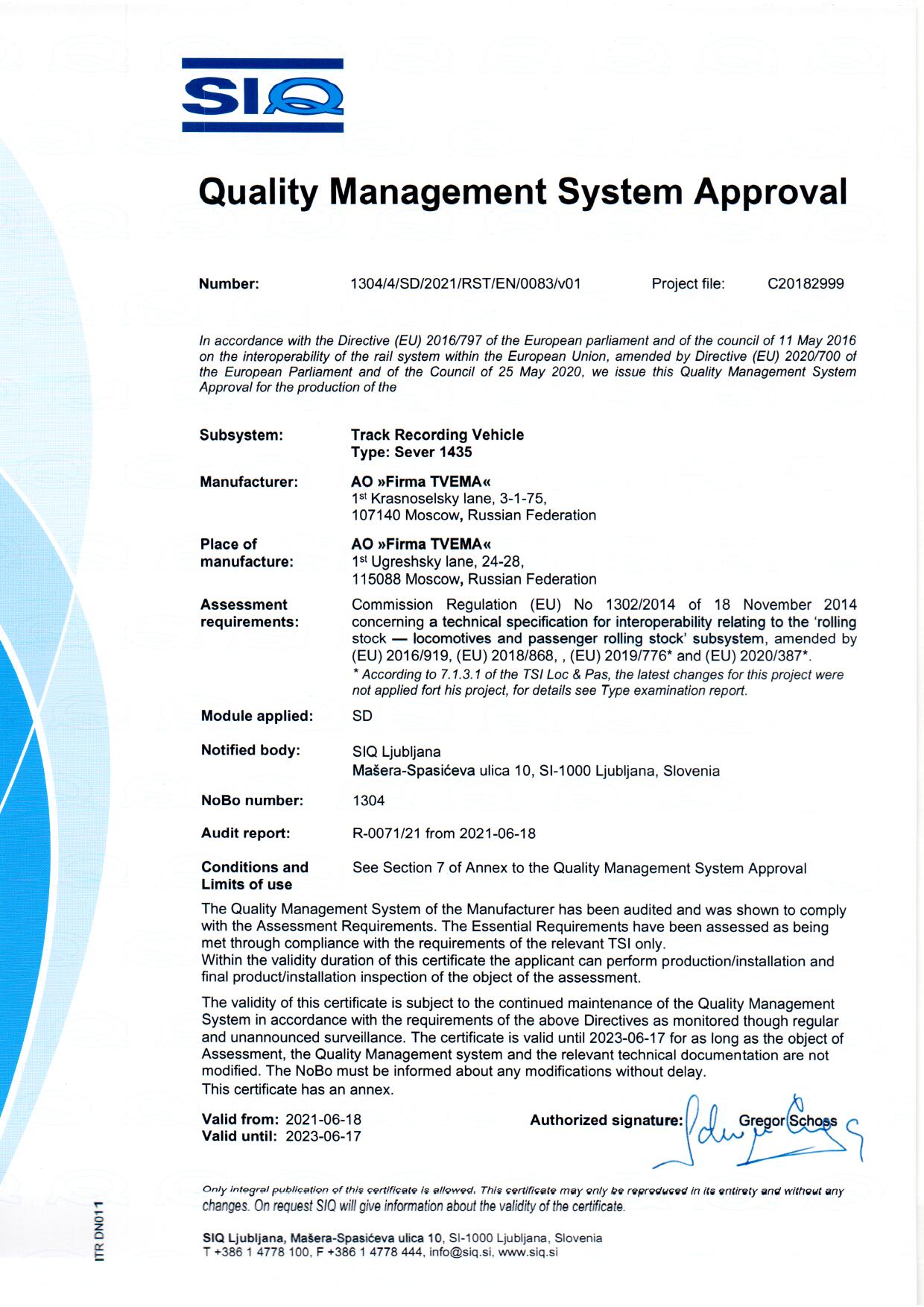 Certification in two international quality management systems - General (ISO 9001/GOST ISO 9001-2011) and sector (IRIS) - certificate of liability the company TVEMA to consumers and the reliability of its products and their quality support at all stages of the life cycle - from performance and deliveries under the order prior to service and maintenance, repair and modernization.
